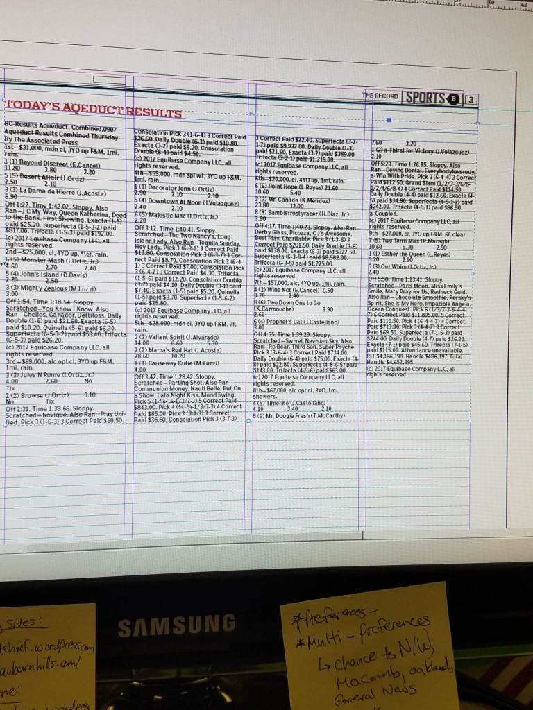 Michigan content functions differently than New York content. Whereas New York content tends to be mostly pre-prepared and very rigid in what editors desire in design, Michigan content is not always pre-packaged and requires more creativity and effort on the part of the paginator. For instance, skyboxes and rails are linked to the page for New York, whereas the paginator designs them for Michigan. These pages, thus, gave me more freedom to showcase my design skills and to work with editors right here in Michigan. This includes attending Oakland Press meetings, where I interacted with editors, presented daily wire budgets and chose the front-page template for the day.