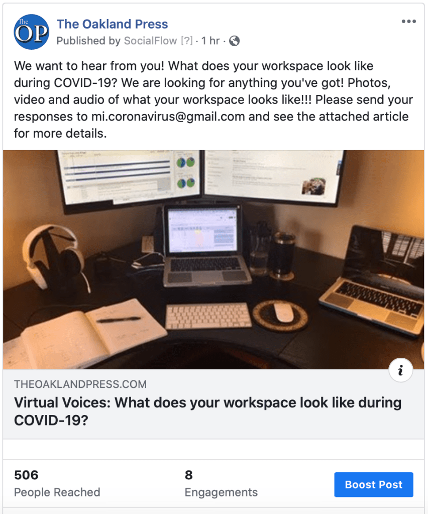 I was assigned primarily to The Macomb Daily, covering Macomb County, and our Downriver websites, The News Herald and The Press & Guide. I would call in for each paper’s meetings daily, listen to what stories and news was circulating for the day and read our numbers for Google Analytics and Facebook, which was later on Parse.ly, as well as address any other concerns each paper’s staff would have. I would also occasionally pop in on Wednesday mornings for their in-person meetings at their office in Southgate. I’m pleased to say I maintained a positive relationship with the team and worked hard to meet whatever online needs or concerns they had.
